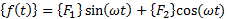 are constant vectors, with the only time-varying component the sine and cosine terms, both at the same frequency. The reason for this split to a sine- and cosine-term is that even though the load occurs at a single frequency, the load is not required to be in-phase at all locations where we apply a load. In other words, different locations may have different phase-angles for the applied load.