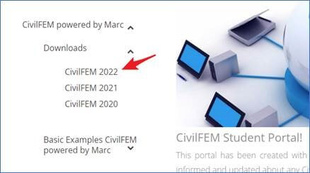 The student versions can be downloaded from the CivilFEM academia page. Before you will be able to download a student version you will first need to register.
