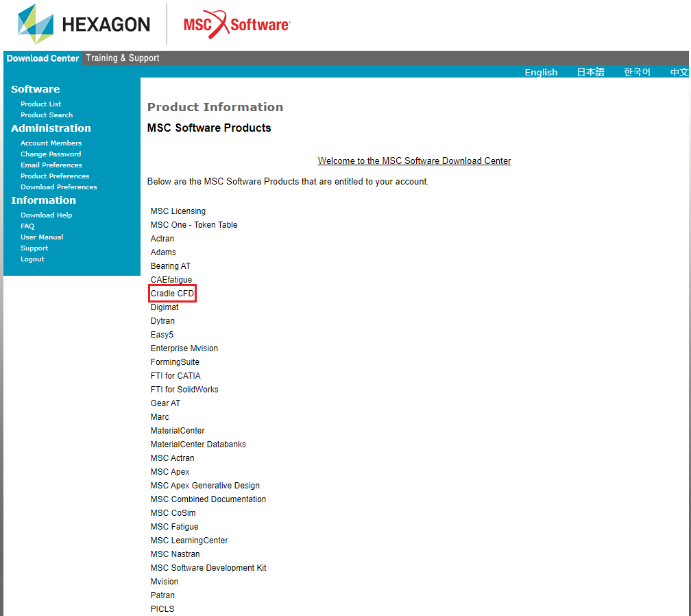 Step 1: Login to the MSC Software Download Center (Once logged in the products page should open up).