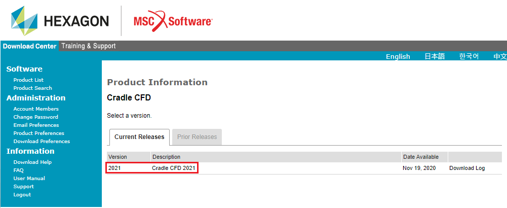 Step 3: Click on the latest cradle version available (Ex. Cradle CFD 2021).