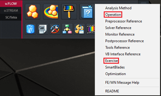 Operation: This option gives you step-by-step instructions to complete a relatively simple CFD simulation. The intent of these tutorials are to familiarize yourself with the user interface and the general workflow that should be followed to setup a simulation. In version 2020 of scFLOW, you have this list of example problems to help you quickly learn how to use the user interface: