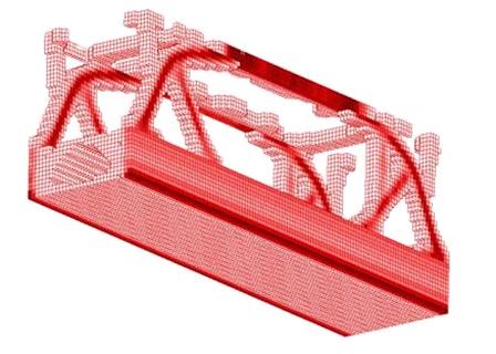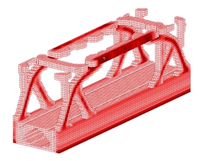 This image (above) shows the allowable areas of where structural members may be without any regard to their shape or design (within that space). Furthermore it is important to add all the possible loads that may be applied to this brige. This include loads due to traffic and even own weight and wind loads. You can also include seismic loads if required. Nastran can take all these requirements into account. It could be devastating if you neglect any single load case that is important.