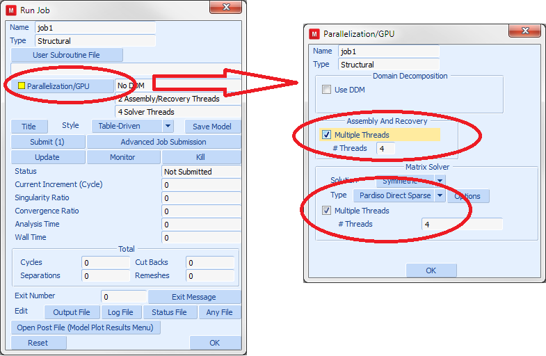 Some solvers support parallel solution. Parallel matrix-solution does not require any additional licenses though, so there is no reason not to use it on solvers that allows parallel solution. Figure 1 shows where to activate parallel matrix solution in Mentat.