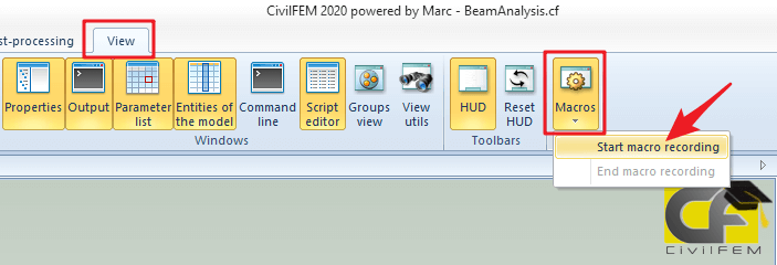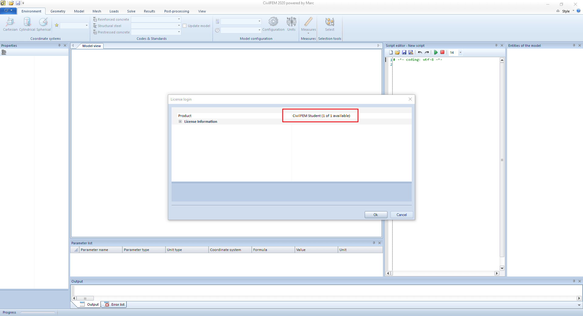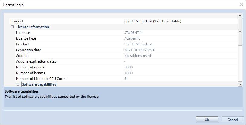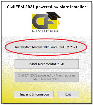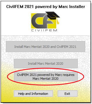 Open CivilFEM powered by Marc and check that it shows the availability of a license: