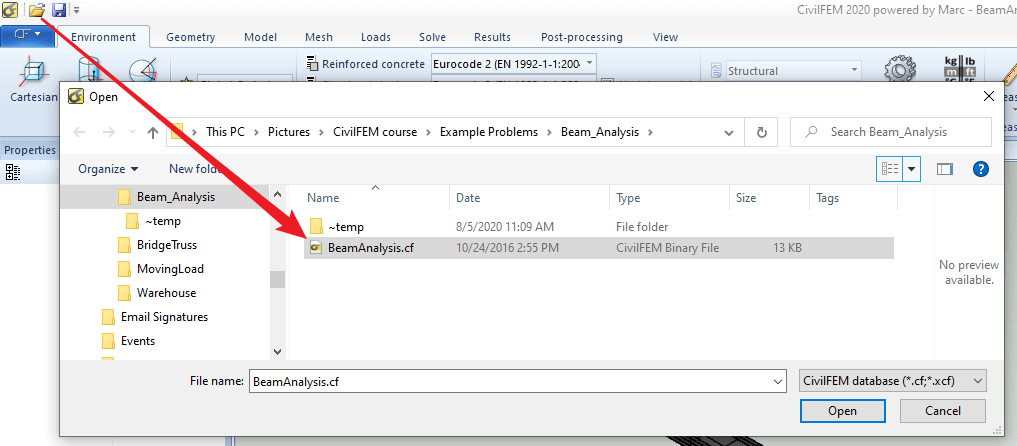 6. If CivilFEM can open, re-open it and share screen grabs of this screen's contents: