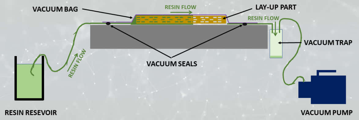 Resin Transfer Moulding (RTM) or vacuum fusion is manufacturing process extensively used by manufacturers in the aerospace, maritime, automotive and energy sectors. The technique can generally be described as the process where an epoxy or thermoset resin is infused with a reinforcement or fibre material. Resin is sucked with the help of a vacuum pump through the part, consisting of fibre materials and/or core material. A vacuum trap is incorporated in the vacuum line to prevent the liquid resin from damaging the vacuum pump or pipe network. The product has very favourable strength-to-weight, stiffness and corrosion-resistant characteristics and can accommodate shapes for parts that conventional manufacturing does not allow.