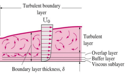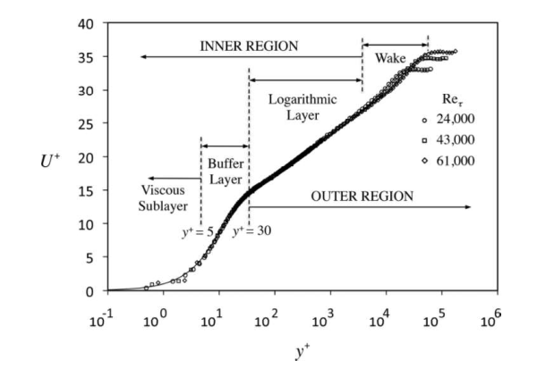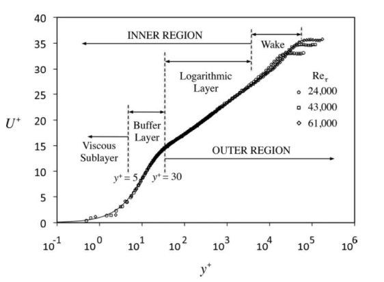 The turbulent boundary layer can be divided into 4 regions based on their distance from the no-slip wall as showed in Figure 3: