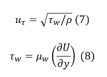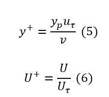 To be able to understand y+ and U+ we need to look at how they are calculated. The equations to calculate y+ and U+ are given by Equations 5 and 6 respectively.