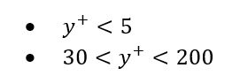 We have now seen different wall functions that is valid for different y+ values. In general, we try to target one of the following y+ ranges:
