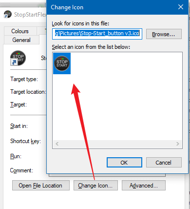 7) If you wish to give it a new icon, download this file and set it under Properties too.