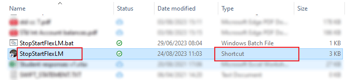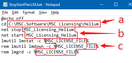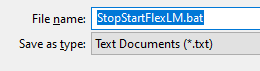 2) Save the text file as StopStartFlexLM.bat in a convenient location (ensure that the file extension is saved as .bat and NOT .bat.txt)