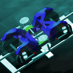 For the latter two cases, it is best to ensure that the locations of connections (joints, springs and dampers) coincide with the interface nodes specified in the flexible body (described in the procedure to create flexible parts).